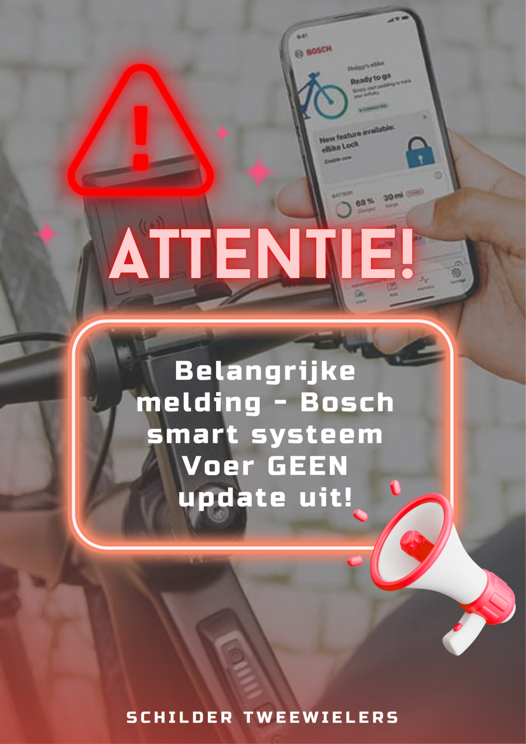 Beste klanten, Bij Schilder Tweewielers staan kwaliteit en klanttevredenheid al jarenlang voorop. We vinden het belangrijk dat elke fiets die bij ons binnenkomt met de grootste zorg wordt onderhouden. 🚲 Vanwege aanhoudende drukte in onze werkplaats en om onze service op het hoge niveau te houden dat u van ons gewend bent, hebben wij een belangrijke beslissing moeten nemen: Wij voeren op dit moment uitsluitend onderhoud en reparaties uit aan e-bike en gewone fietsen van de merken die wij zelf verkopen. Dit betekent dat wij helaas geen service meer kunnen bieden aan fietsen van andere merken. We begrijpen dat dit voor sommige klanten teleurstellend kan zijn. Toch hopen we op uw begrip. Deze keuze stelt ons in staat om: U sneller te helpen, De juiste onderdelen op voorraad te houden, En de kwaliteit van ons werk te waarborgen. Wat kunt u van ons verwachten? ✔️ Vakkundige service van onze ervaren monteurs ✔️ Snelle doorlooptijd voor onderhoud en reparaties ✔️ Altijd originele onderdelen van onze merken Bedankt voor uw vertrouwen in Schilder Tweewielers. We blijven ons elke dag inzetten voor topkwaliteit en persoonlijke service! *sportfietsen zijn uitgezonderd, hiervan kunnen wel de meeste merken in onderhoud die wij zelf niet verkopen. 🚲 Met vriendelijke groet, Het team van Schilder Tweewielers
