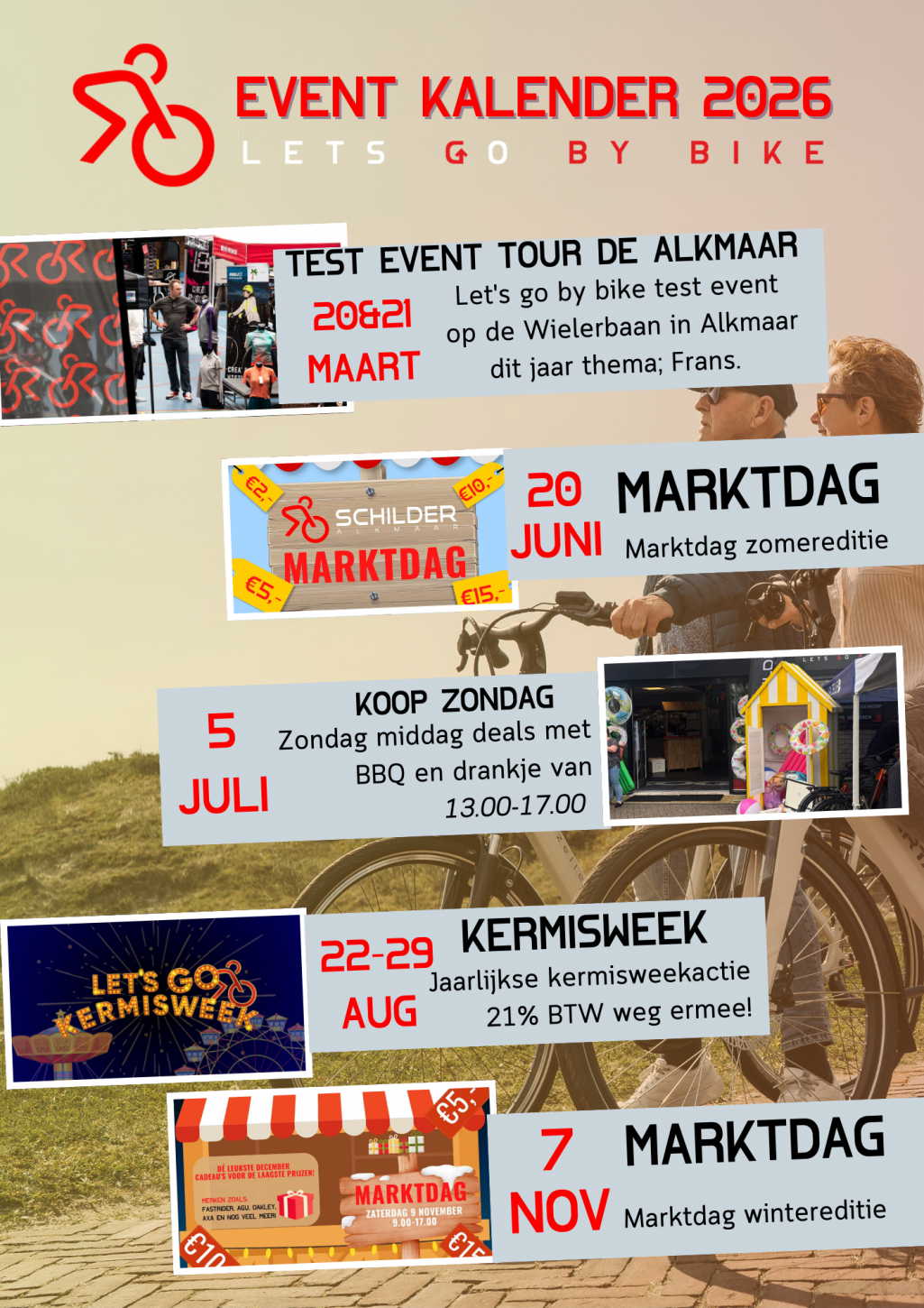 Eventkalender 2026 Ook in 2026 organiseren wij bij Schilder Tweewielers diverse evenementen voor fietsliefhebbers van elk niveau. Van testdagen en Marktdagen en niet te vergeten onze kermisweek, onze agenda staat in het teken van beleving, innovatie en samen fietsen. Bekijk hierbij alle geplande events en noteer jouw favorieten in de agenda. We zien je graag bij één van onze activiteiten! 🚴♂️